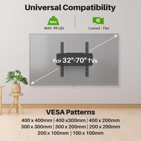 USX MOUNT Full Motion TV Wall Mount for Most 32-70 inch TVs up to 99 lbs, Wall Mount TV Bracket with Dual Articulating Arms, Swivel, Tilt, Max VESA 400x400mm, TV Mount Fits 12”/16” Wood Studs
